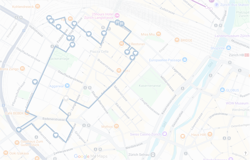 Start: 25hours Hotel, Langstrasse 150, 8004 Zurich